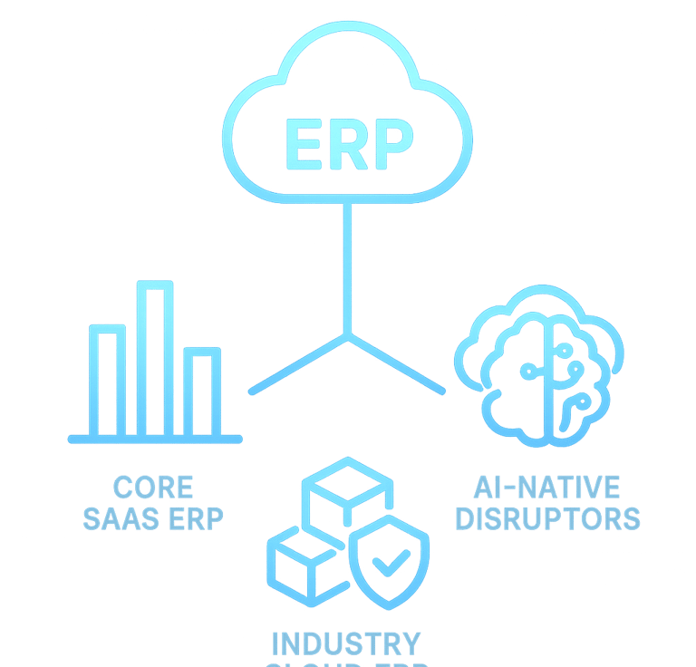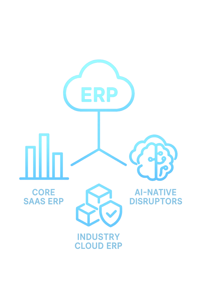 AI-Native Disruptors → Campfire, Rillet, and others targeting digital-first firms with ERP that predicts, generates, and acts agentically out of the box.