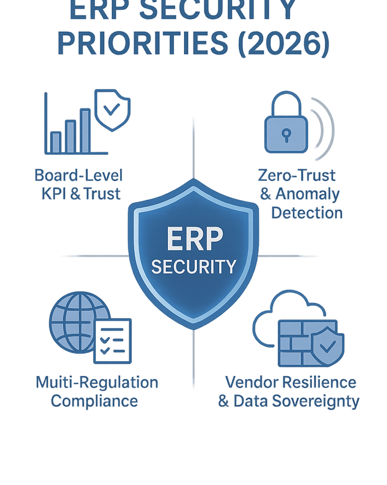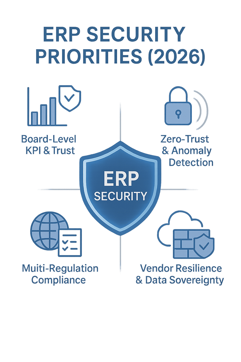 In 2026, ERP security isn’t a box to check — it’s a strategic differentiator. Enterprises face an unprecedented mix of threats and regulations: ransomware targeting ERP data, ESG-driven audit requirements, and national sovereignty laws dictating where data must live.