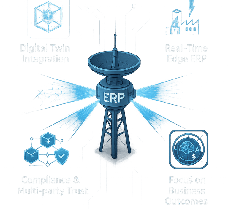 Emerging technologies — integrating ERP into digital twins, edge computing, and trusted data networks.